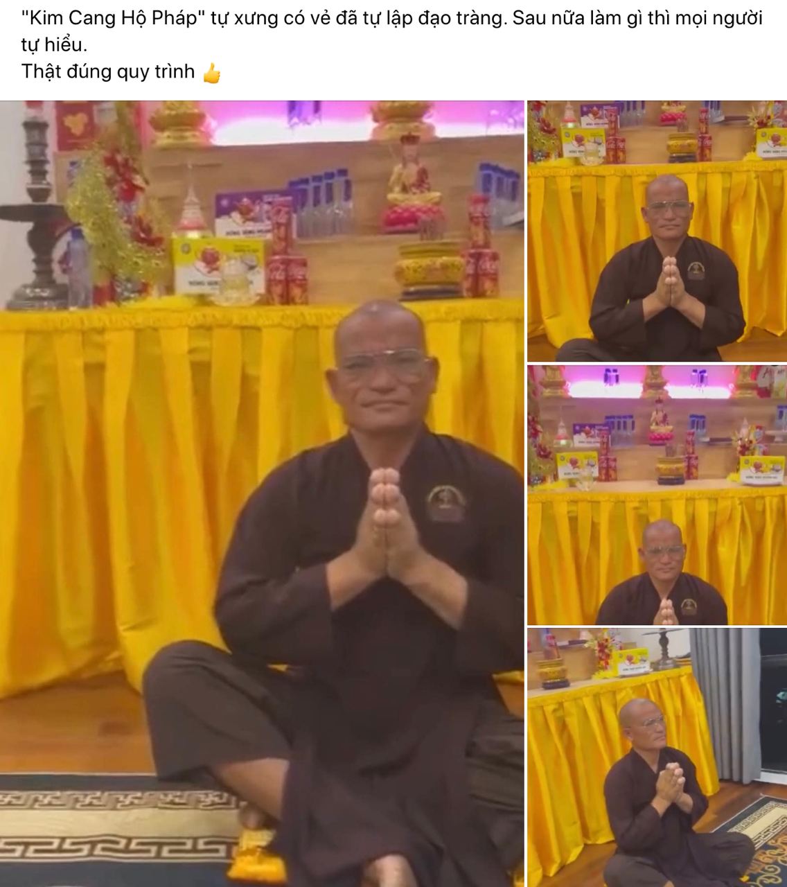 Trước đó, ngày 5/6, người đàn ông này cũng xuất hiện trong video ghi lại hình ảnh mặc pháp phục màu nâu ngồi trước đạo tràng với nội dung: “Hộ pháp Kim Cang tự xưng có vẻ đã tự lập đạo tràng. Sau nữa làm gì thì mọi người tự hiểu. Thật đúng quy trình”. Hình ảnh và nội dung được lan truyền nhanh chóng, kèm theo đó là những bình luận chê trách, mỉa mai ông “Kim Cang”. Tuy nhiên, cũng có phần đông người có ý kiến ngược lại và cho rằng ông này đang thiền định buổi sáng tại nhà của một Phật tử.