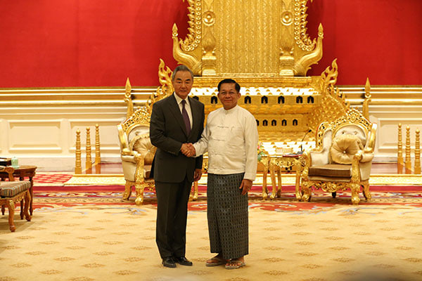 Ngoại trưởng Trung Quốc Vương Nghị cùng Thủ tướng Myanmar Min Aung Hlaing (Nguồn: Ministry of Foreign Affairs of China)
