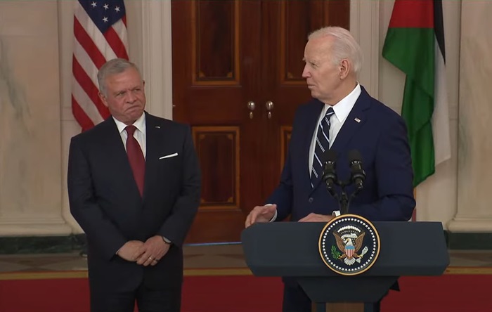 Tổng thống Hoa Kỳ Joe Biden đã có buổi gặp mặt và trò chuyện cùng Đức vua Abdullah II của Vương quốc Hashemite Jordan tại Nhà Trắng. Đôi bên cùng nhau nhấn mạnh phương hướng củng cố ngoại giao cũng như thảo luận về tình hình khủng hoảng tại khu vực Trung Đông, đặc biệt tại Dải Gaza.
